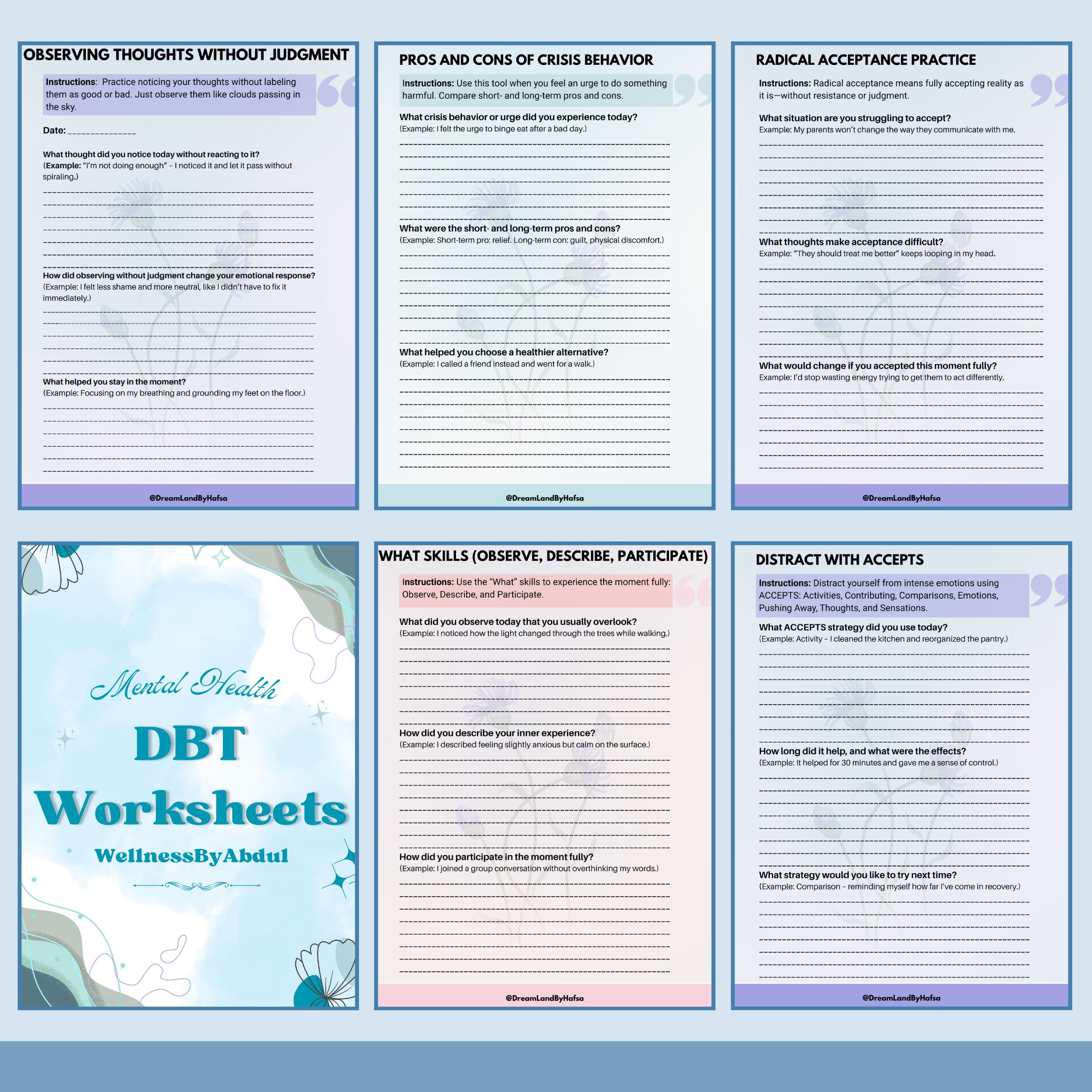DBT Distress Tolerance Worksheet Bundle - Etsy