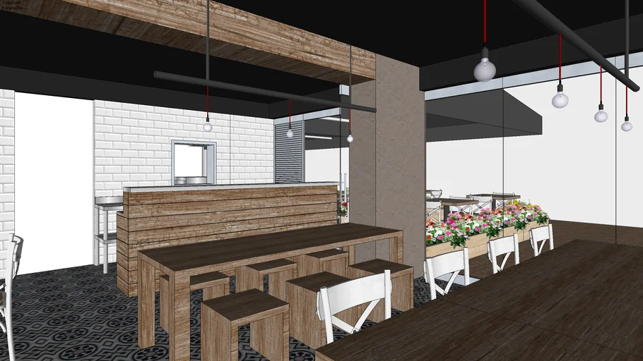 Small Space Restaurant Design SketchUp 3D Model .skp File Download ...