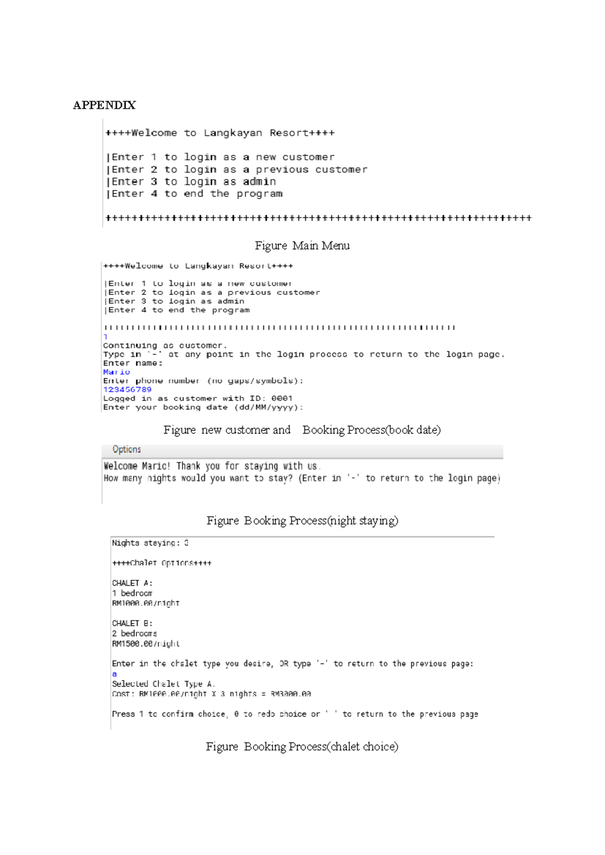 Appendix - APPENDIX Figure Main Menu Figure new customer and Booking ...