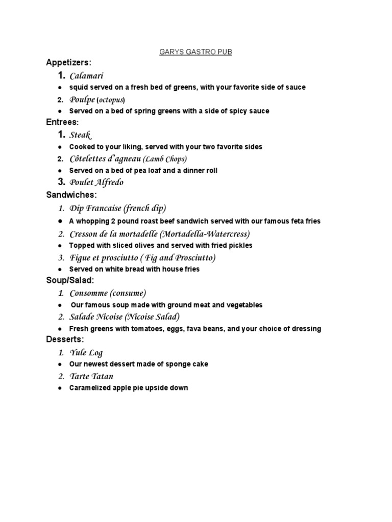 Restaurant Menu Development, Planning, and Design Overview