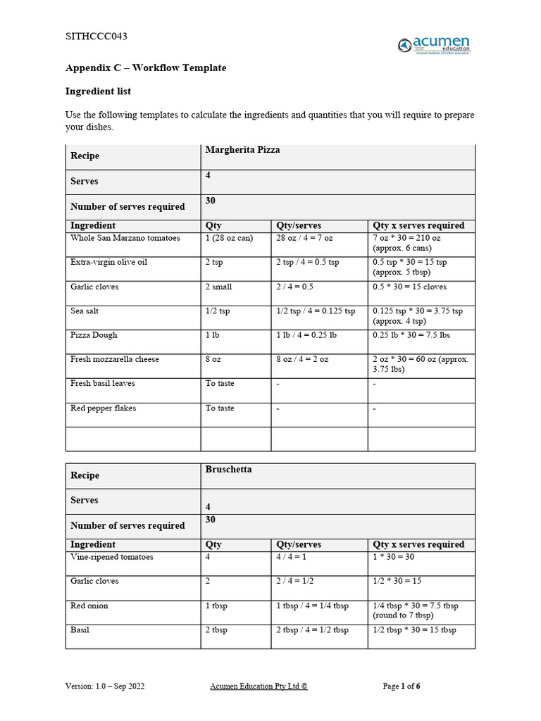 14 - SITHCCC043 - Appendix C | PDF | Pizza | Western Cuisine