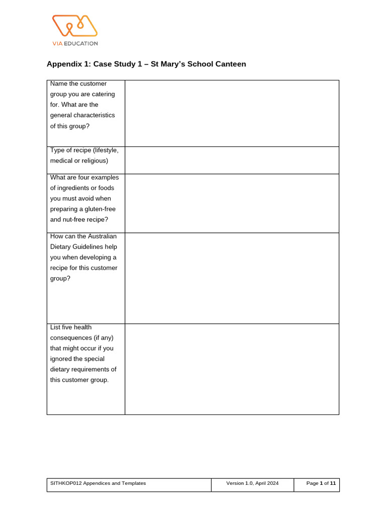 SITHKOP012 Appendices and Templates (Appendix 1 - 8) | PDF