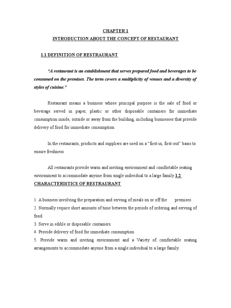 Introduction About The Concept of Restaurant | PDF | Restaurants | Hotel