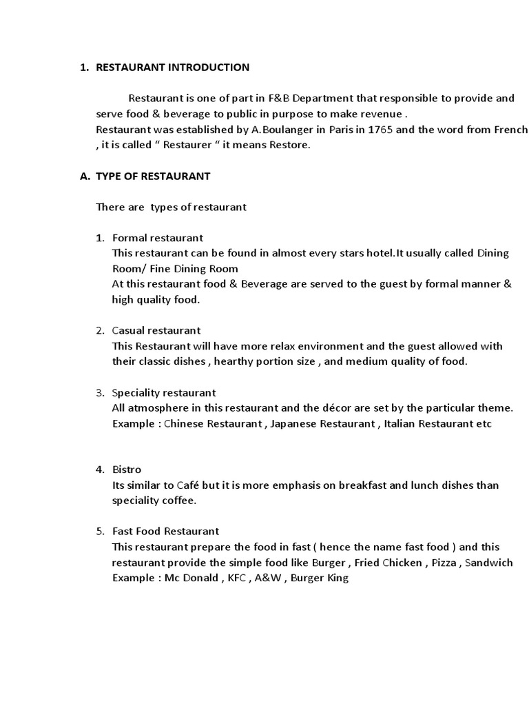 Introduction To Restaurant | PDF