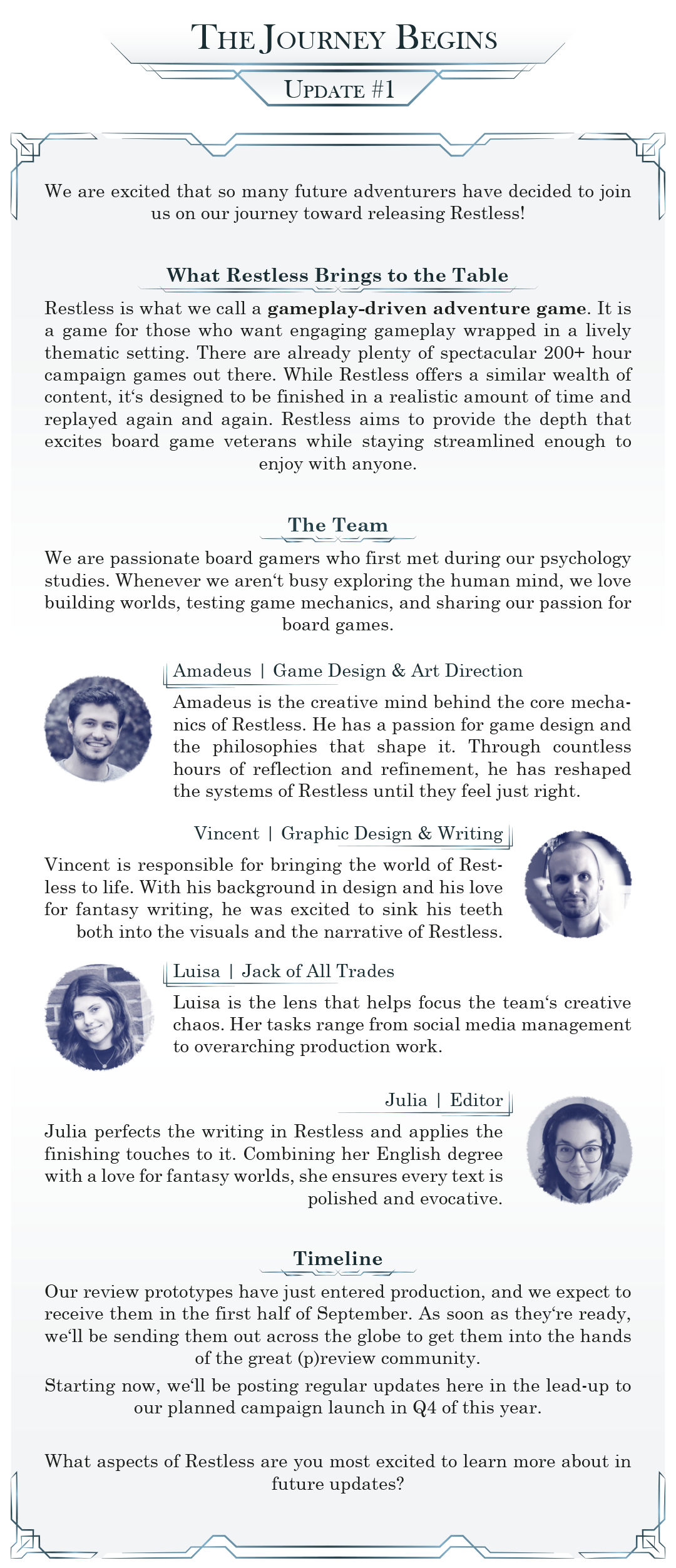 Restless by Restless Designs - Update #1 - The Journey Begins - Gamefound