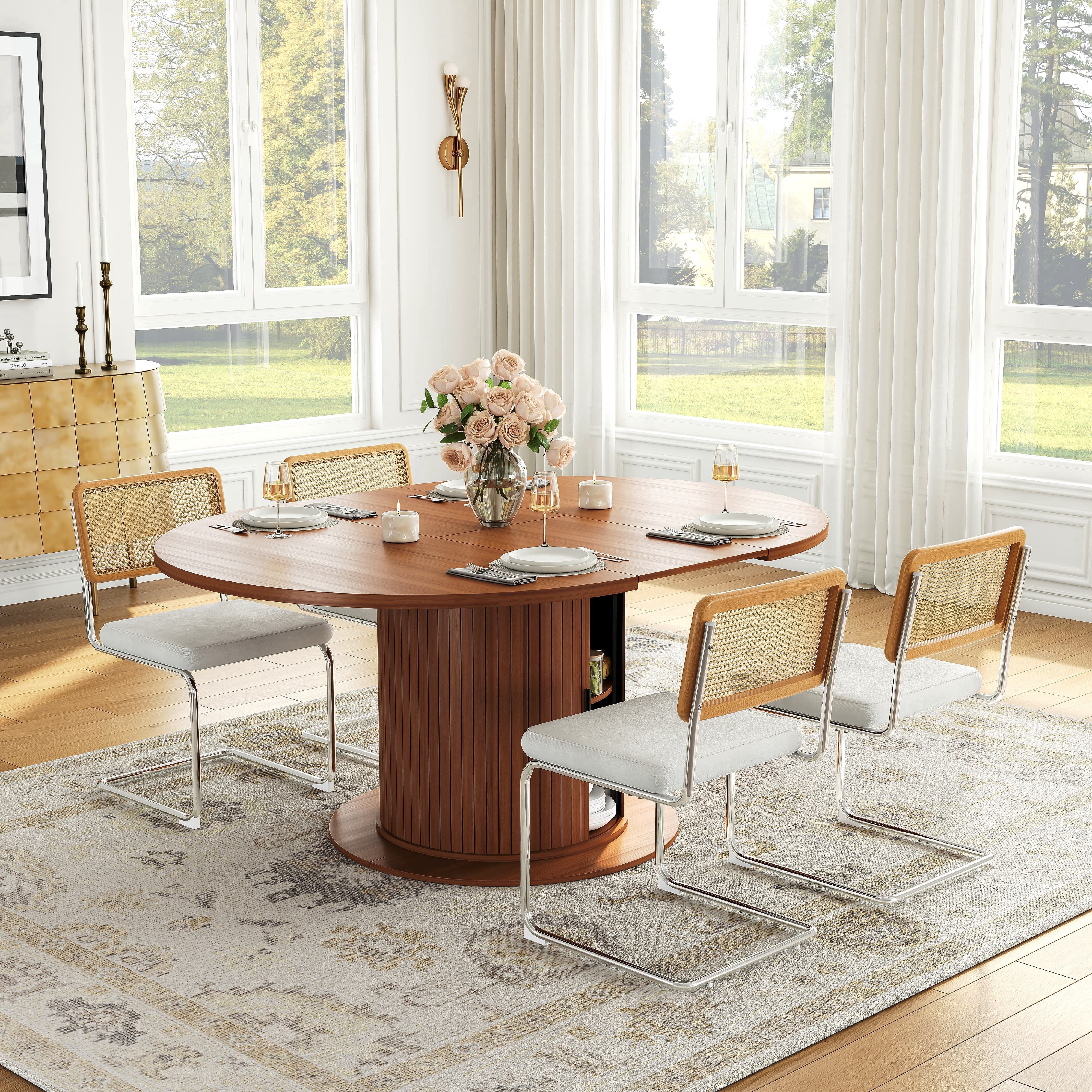 Vynxaria Retractable Dining Table Original Wood Color Seats 4 or 6 ...