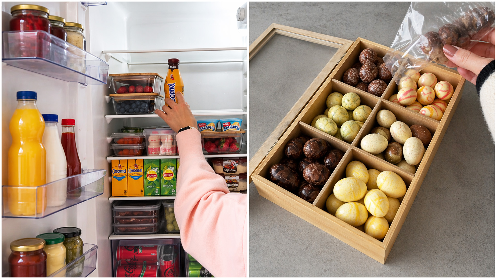 Fridge restock and chocolate organizer satisfying setup