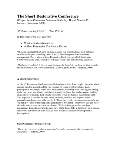 Short Restorative Conference Process | Teaching Resources