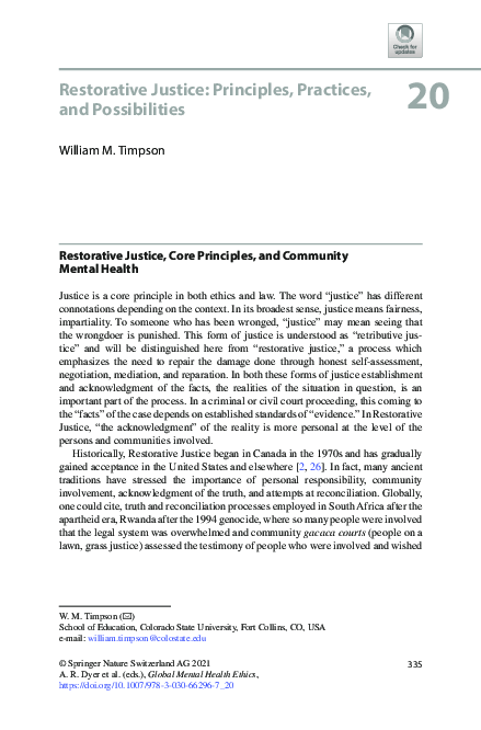 (PDF) Restorative Justice: Principles, Practices, and Possibilities