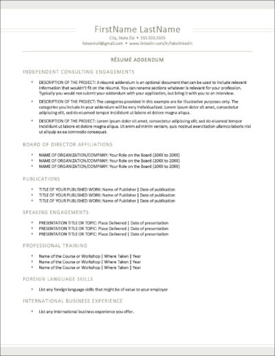 What Does An Addendum To A Resume Look Like