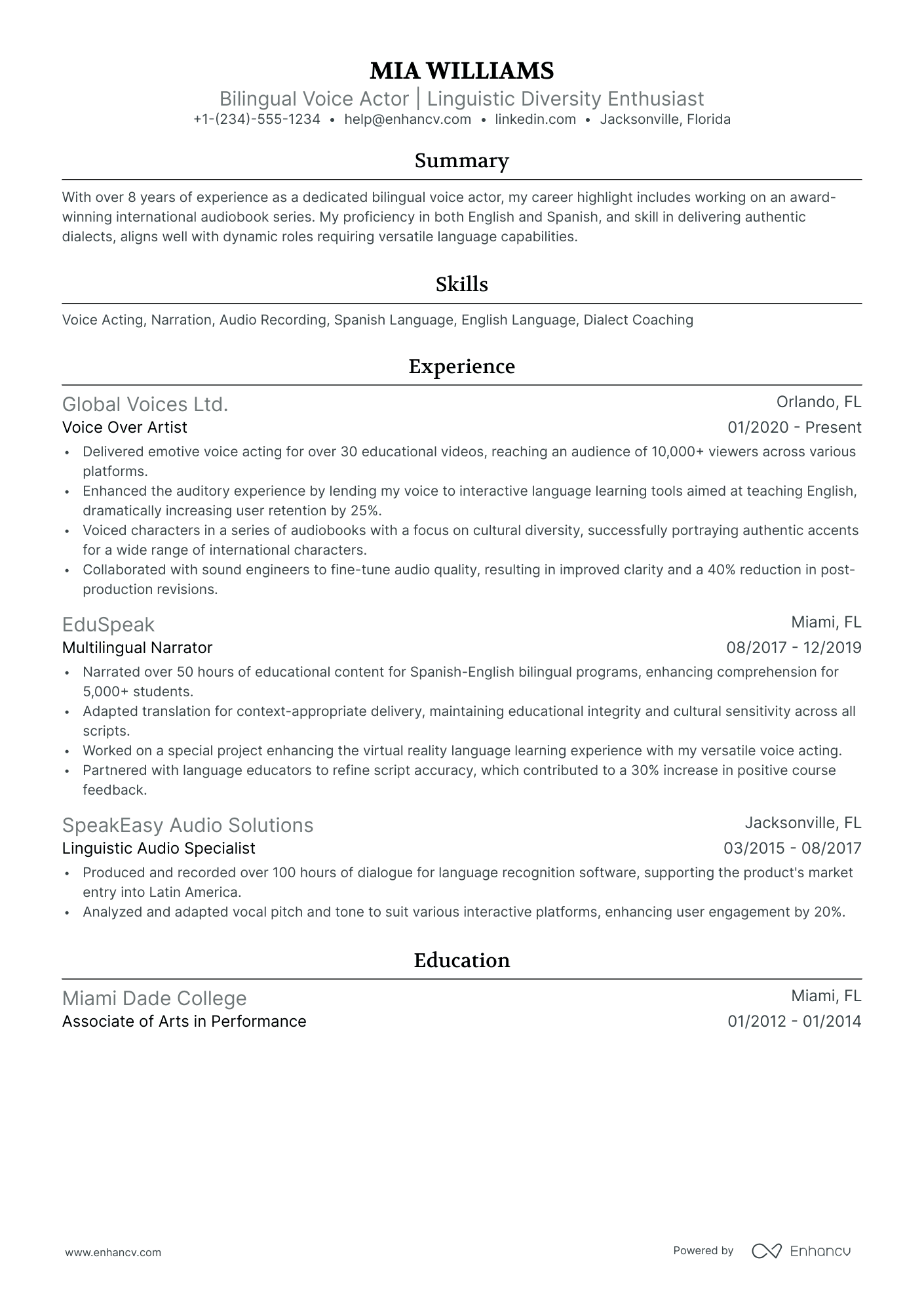 10+ Voice Over Artist Resume Samples & Templates for 2025