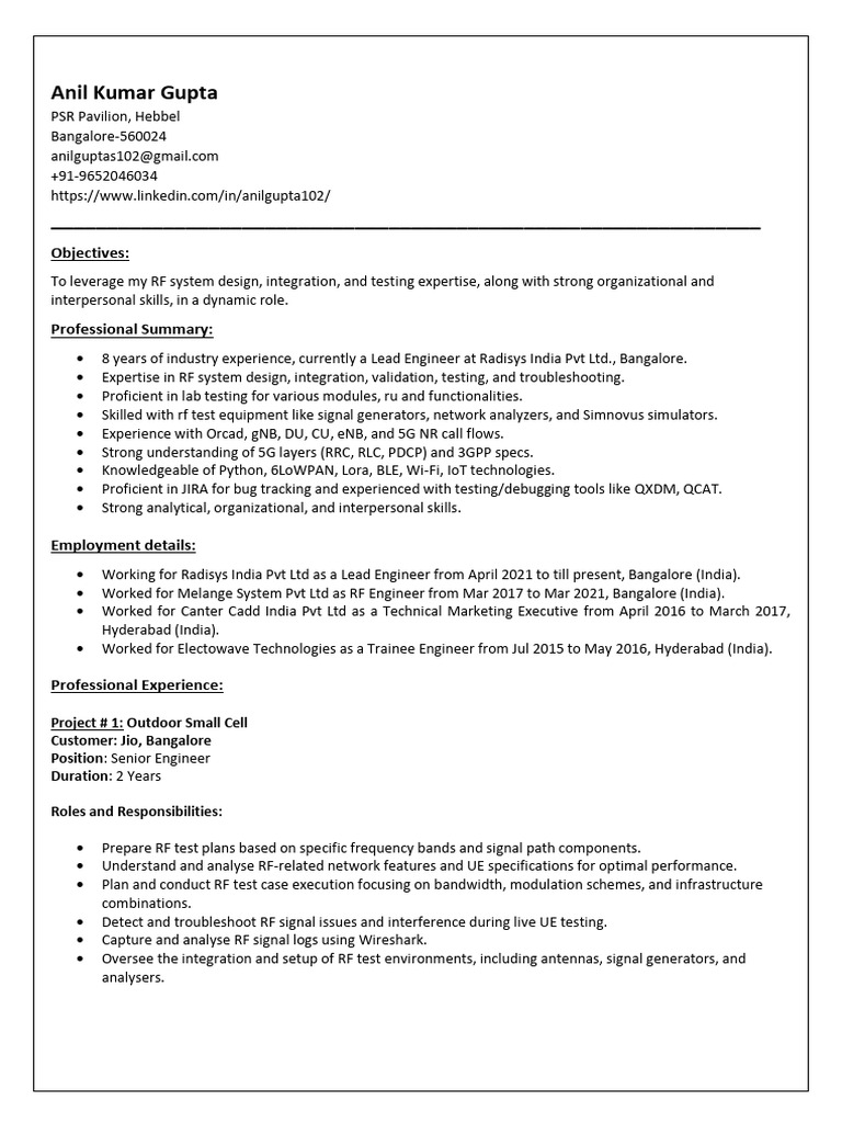 Resume AnilKumarGupta | PDF | Modulation | Information And ...