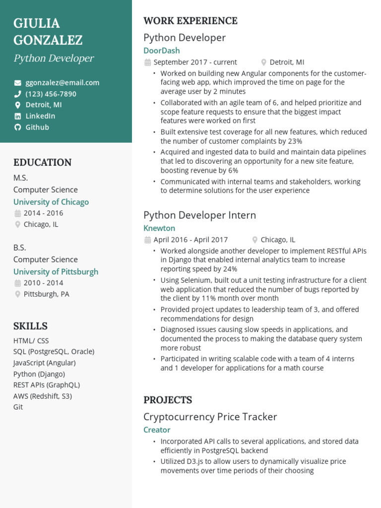 3 Python Developer Resume Examples for 2022 | Resume Worded