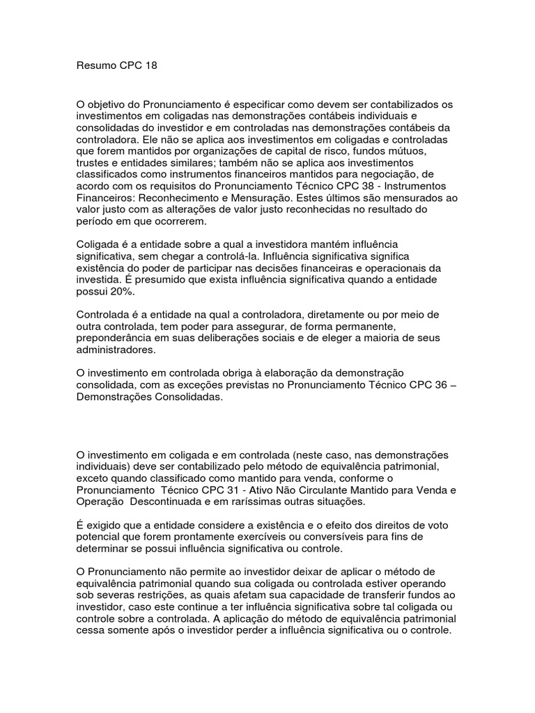 Resumo CPC 18 | PDF | Relatório anual | Capital próprio (finanças)