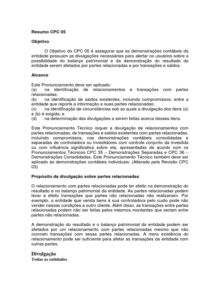 Resumo CPC 05 | PDF | Relatório anual | Contabilidade