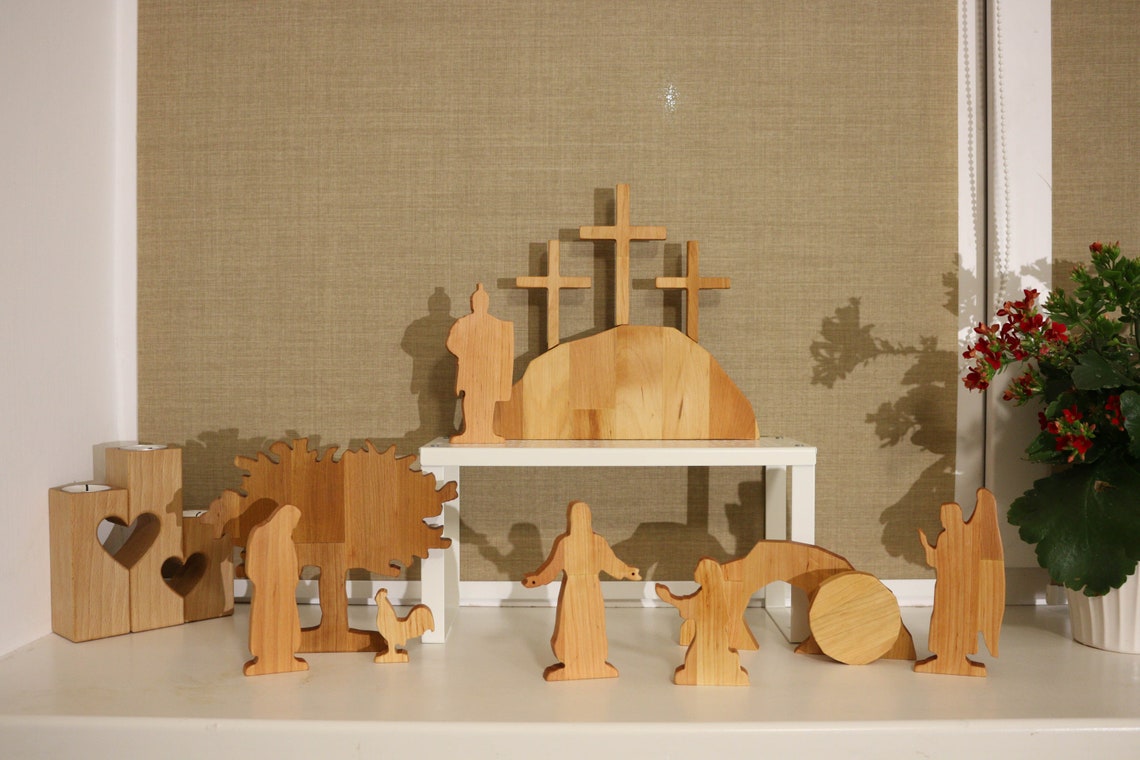 Wooden Easter Set, Nativity Wood Set, Modern Nativity, Resurrection ...