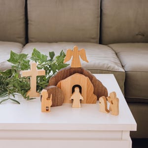 Wooden Easter Set, Wood Nativity Scene, Jesus Decor Empty Tomb ...