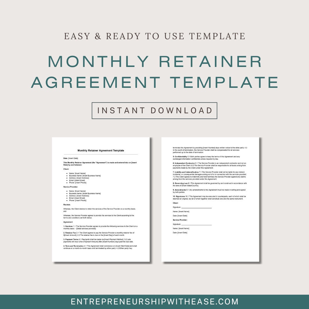Printable Retainer Agreement Template, Digital Download - Etsy