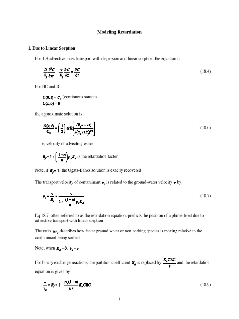 Modeling Retardation: 1. Due To Linear Sorption | PDF | Radioactive ...