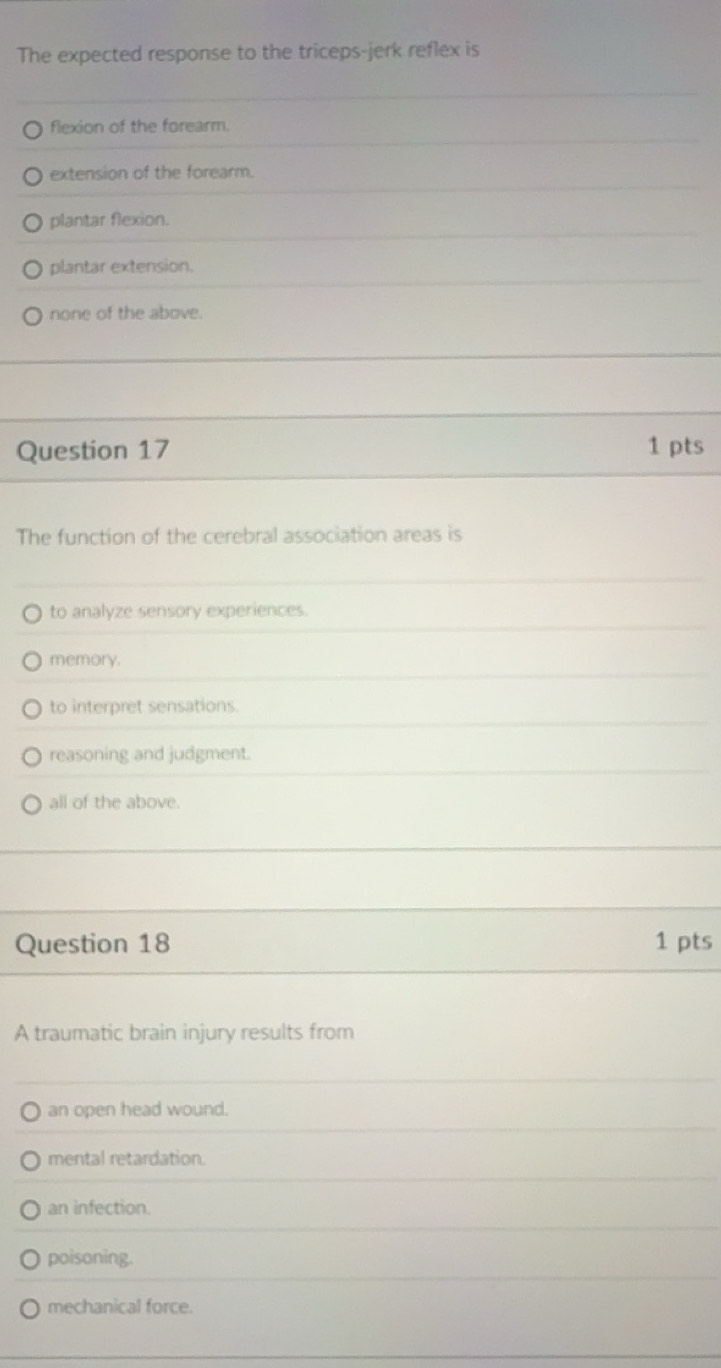 Solved: The expected response to the triceps-jerk reflex is flexion of ...