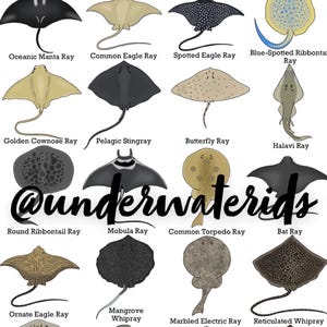 Saltwater Rays Art Print: Fish ID Poster, Fishtank Decor (A4) (buy One ...