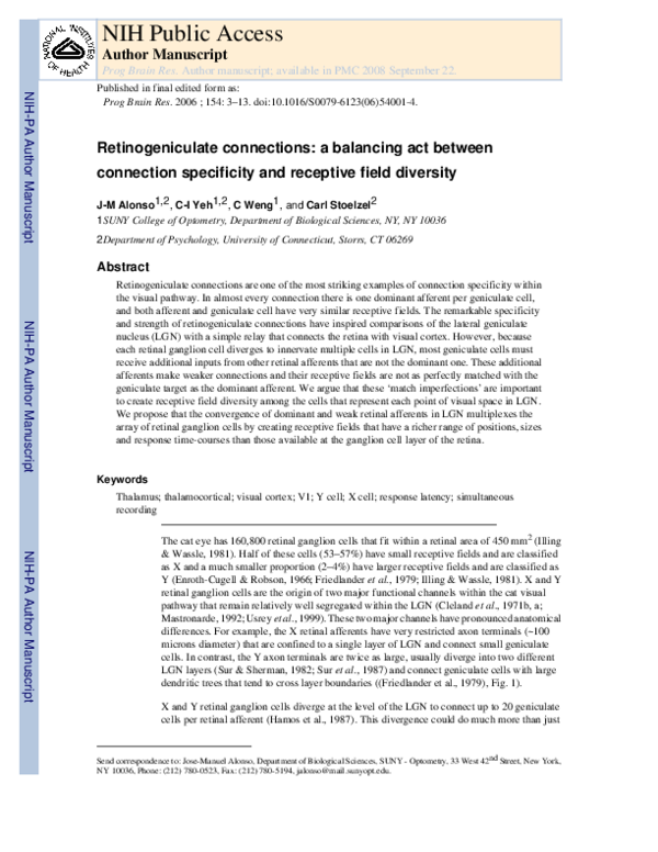 (PDF) Retinogeniculate connections: A balancing act between connection ...