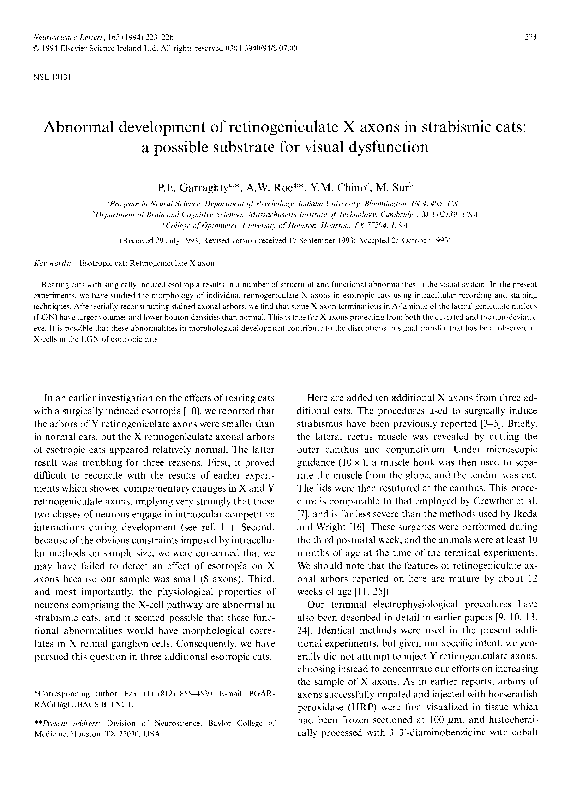 (PDF) Abnormal development of retinogeniculate X axons in strabismic ...