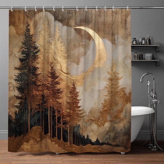 70.87*70.87inch (34.8) Vintage Moon & Pine Forest Shower Curtain ...