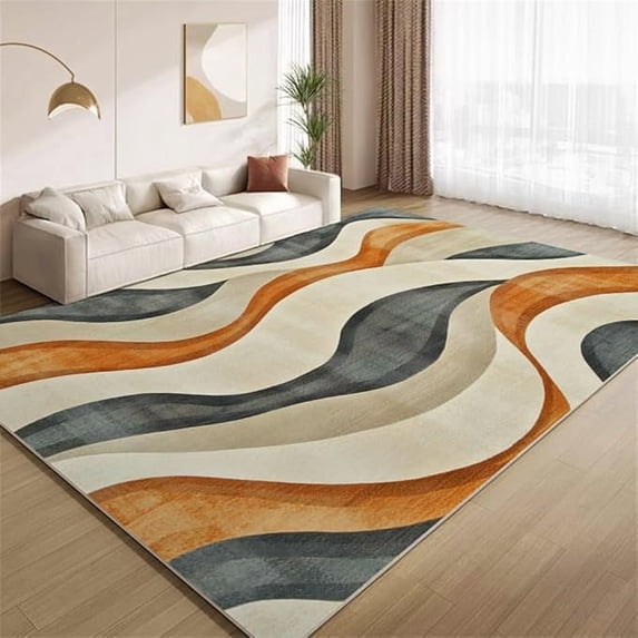 Abstract Blue Brown Stripes Area Rugs Retro Wavy Texture Rugs Non Slip ...