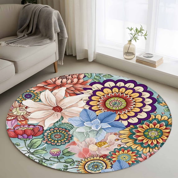 Bohemian Flowers 3FT Round Area Rugs for Living Room Vintage Colorful ...
