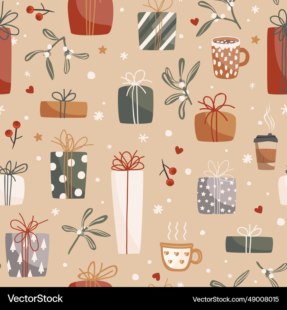 Christmas gift boxes pattern in retro style Vector Image
