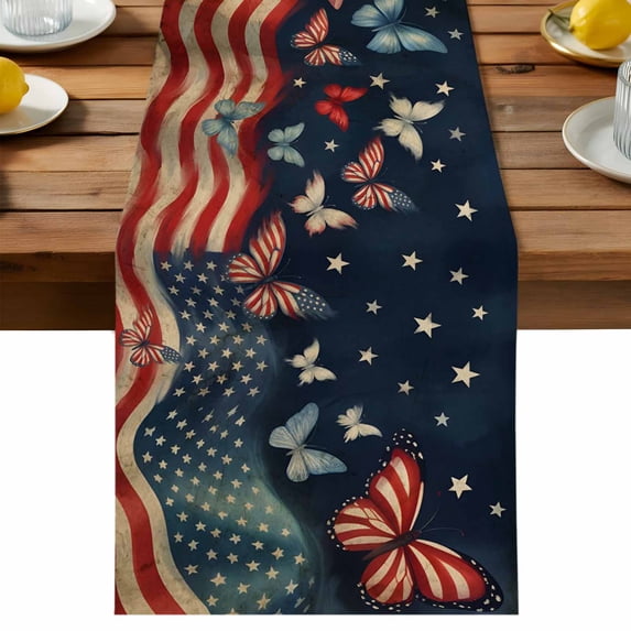 Anniversary USA Flag Table Runner 72 Inches, Vintage Floral Butterfly ...