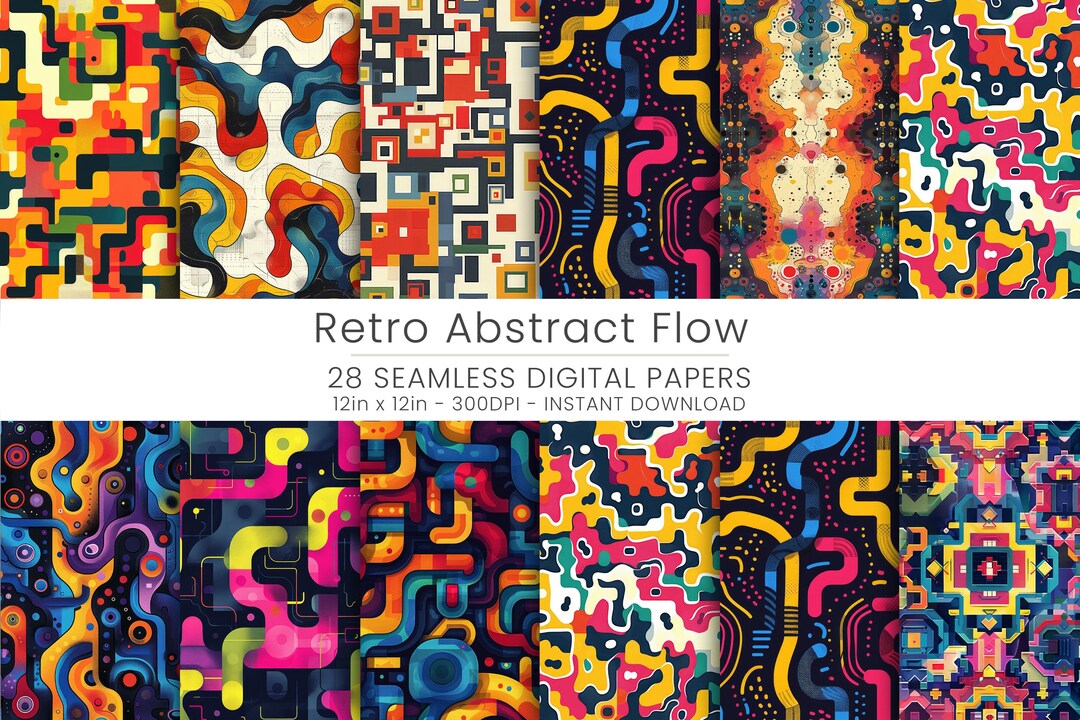 28 Retro Abstract Flow Seamless Patterns - Bold Geometric Digital ...