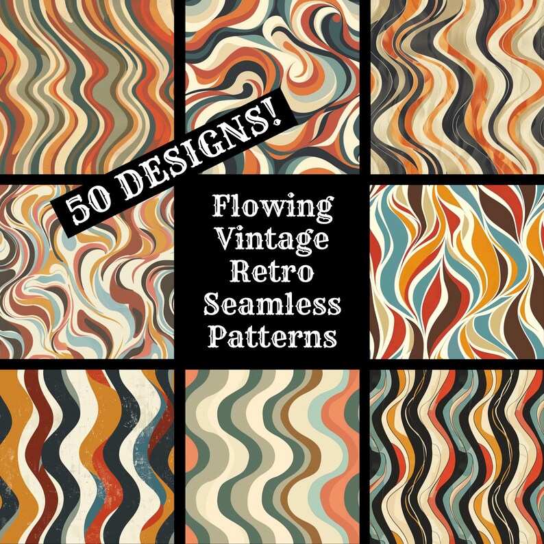 Flowing Vintage Retro Digital Patterns | Instant Download | Seamless ...