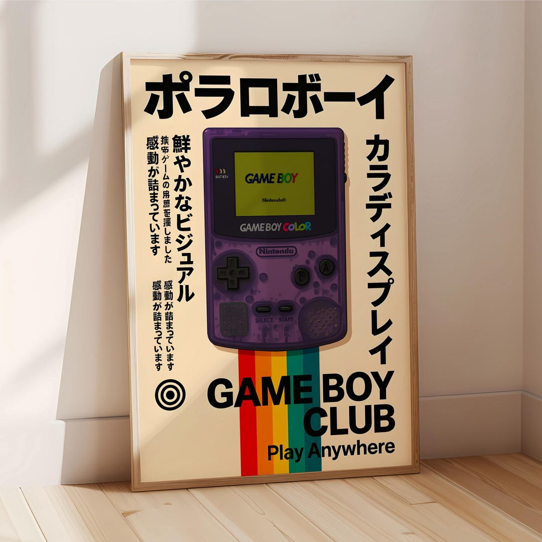 Retro Game Boy Color Poster – Japanese Typography Nintendo Print ...