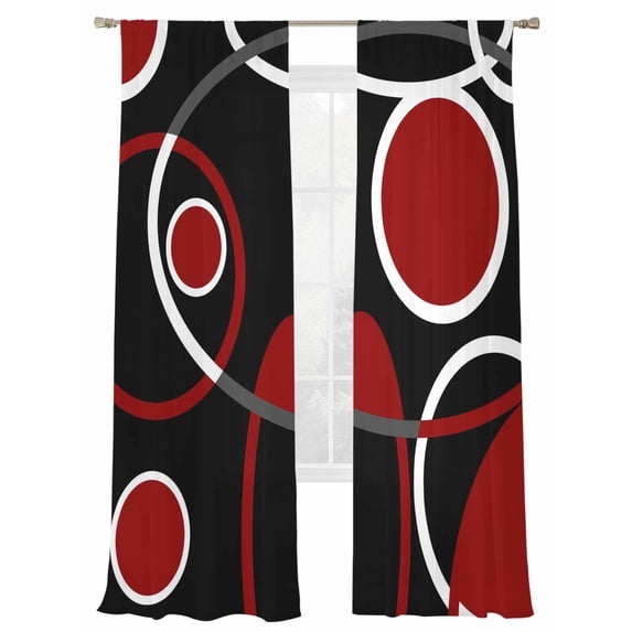 Abstract Geometric Lines Window Sheer Curtain Circular Texture Red ...