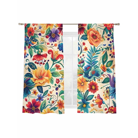 Boho Retro Window Sheer Curtain Spring Colorful Flowers Leaves Semi ...