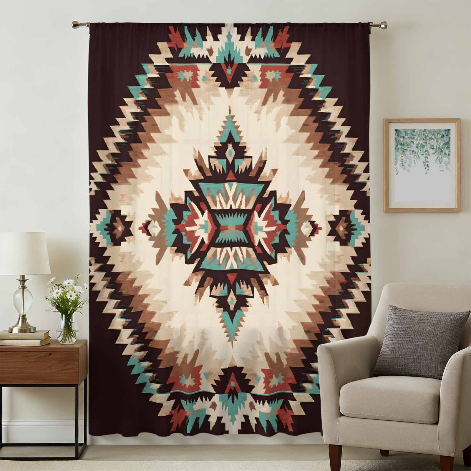 Boho Red Teal Brown Sheer Curtains 63 Inches Long, Southwestern Retro ...