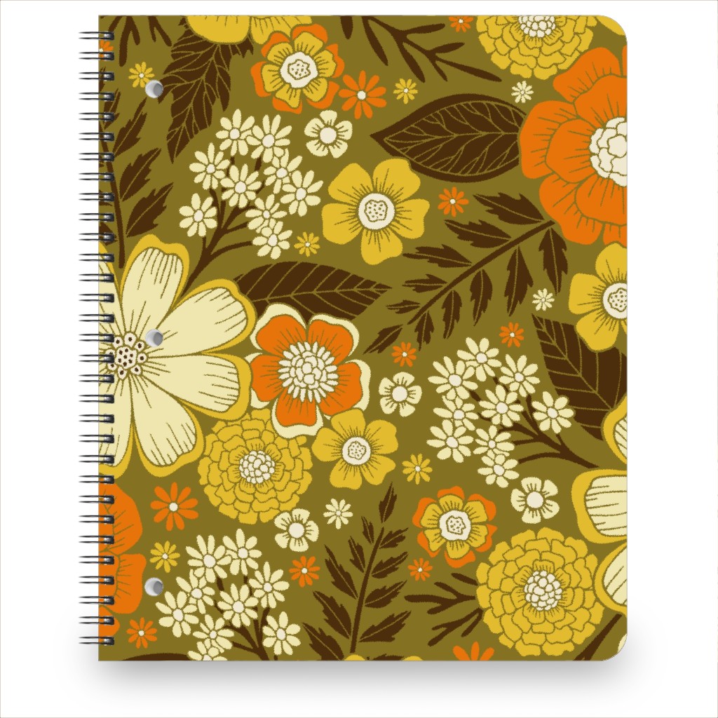 1970s Retro/Vintage Floral - Yellow and Brown Notebook | Shutterfly