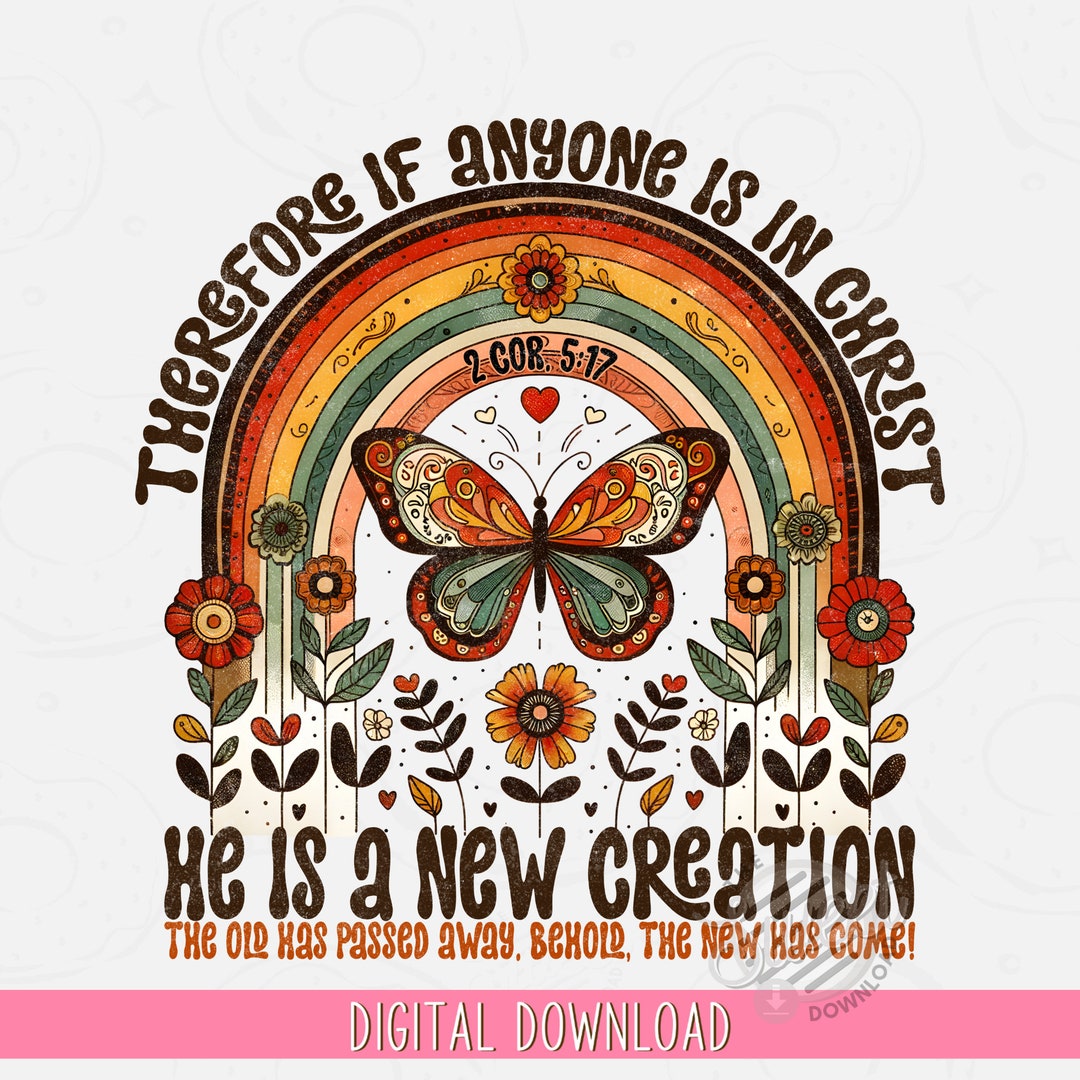 Retro Christian Sublimation Design, New Creation Christian PNG, Boho ...