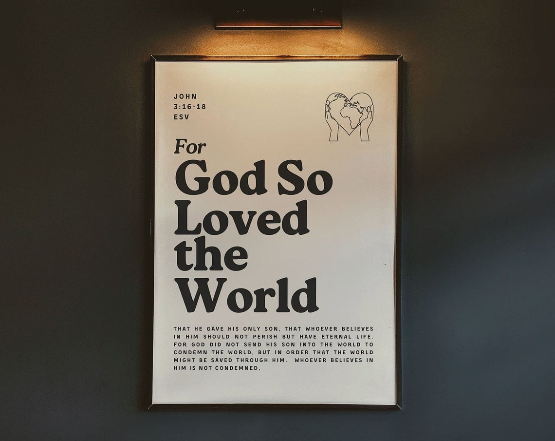 Bible Verse Wall Art John 3:16 Vintage Retro Scripture Poster For ...
