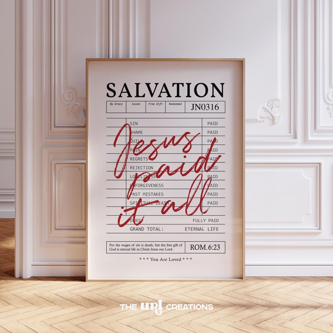 Jesus Paid It All Print, Modern Christian Wall Art, Retro Bible Verse ...