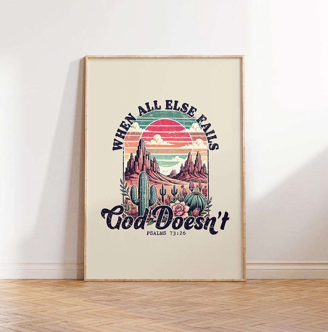 Psalms 73:26 Print, Christian Wall Art, Retro Christian Poster ...