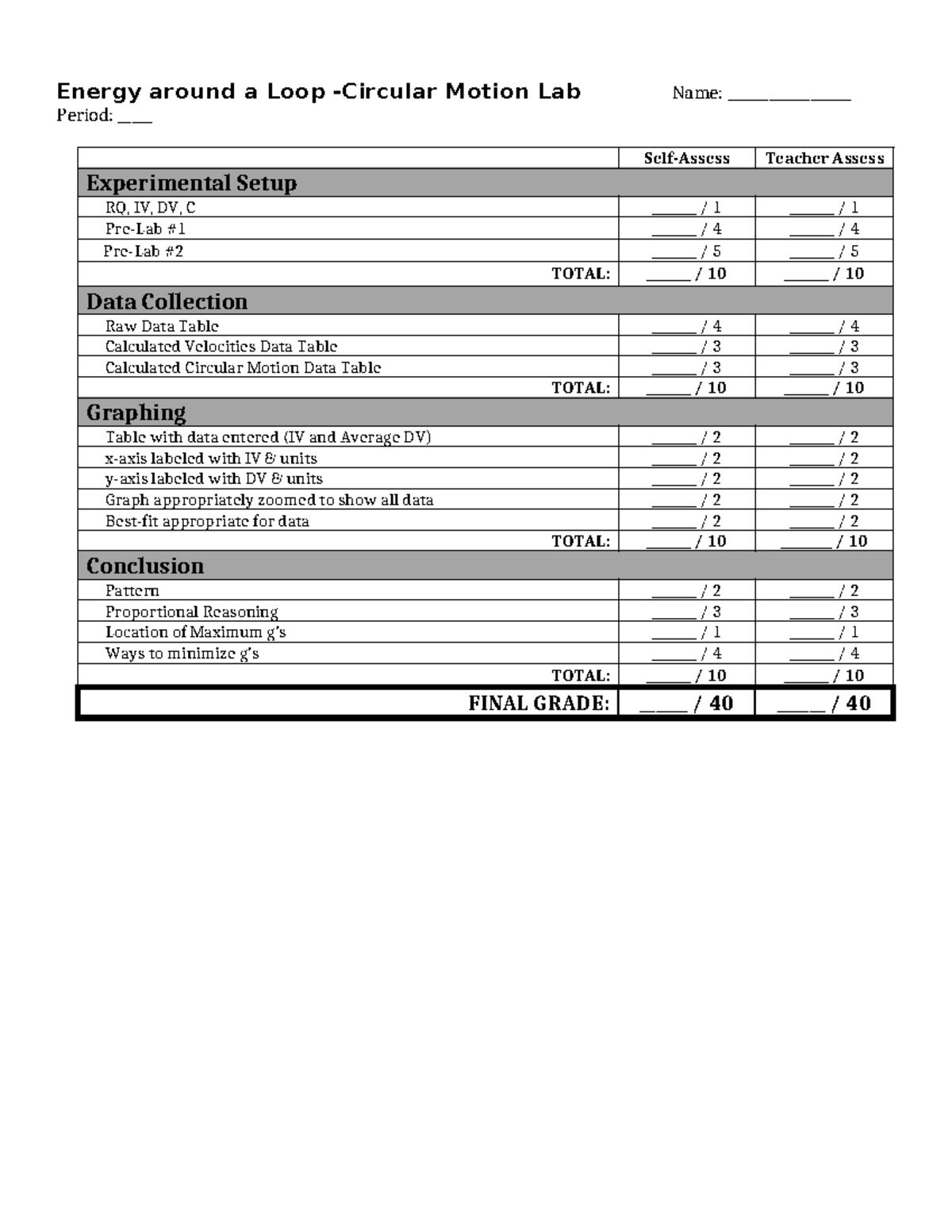 Energy around a Loop Motion Lab (Course Code: Lab 19) Analysis and ...