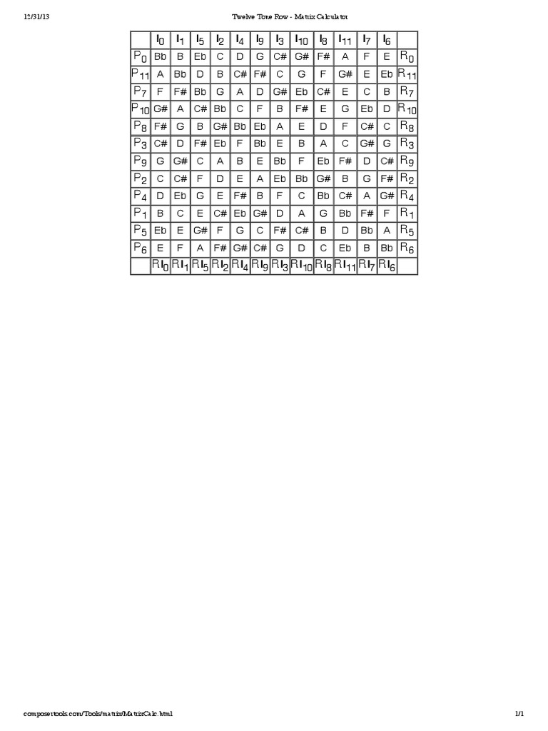 Twelve Tone Row Composition and Matrix – jaldana822 Sheet Music with ...
