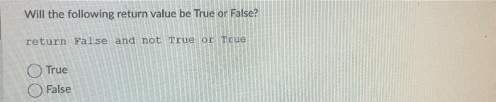Solved Will the following return value be True or False? | Chegg.com