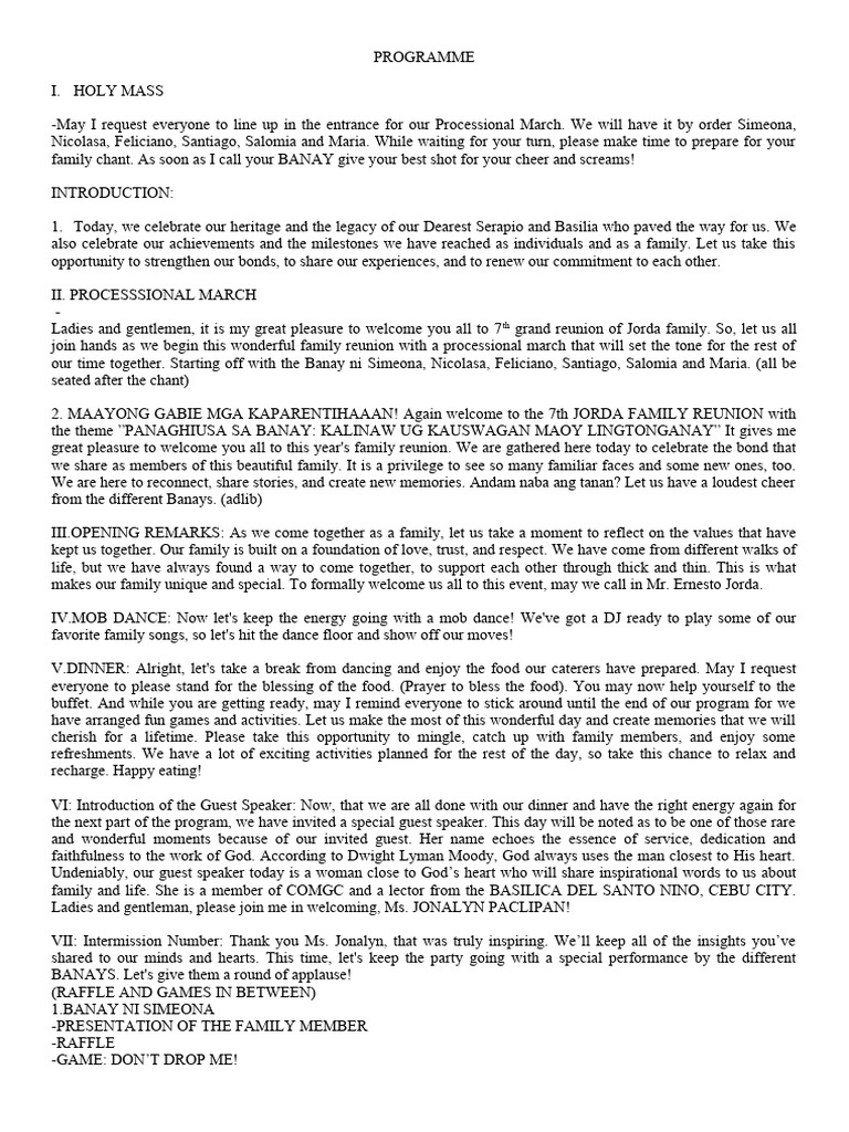 Family Reunion Program | PDF