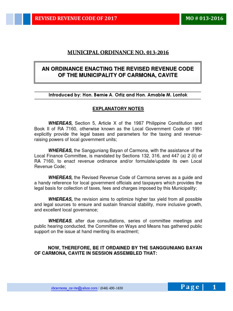 2017 Revised Revenue Code of Carmona | PDF | Business | Taxes