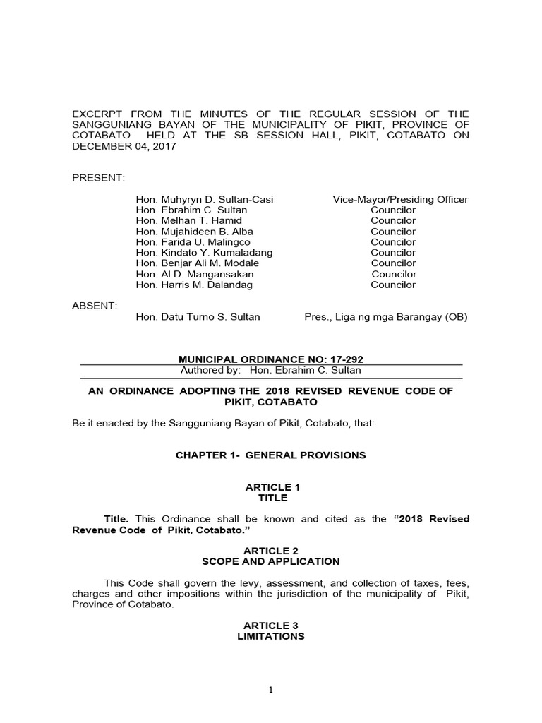 Model Municipal Revenue Code - Final (2017) - Edited - Doc MARGOO | PDF ...