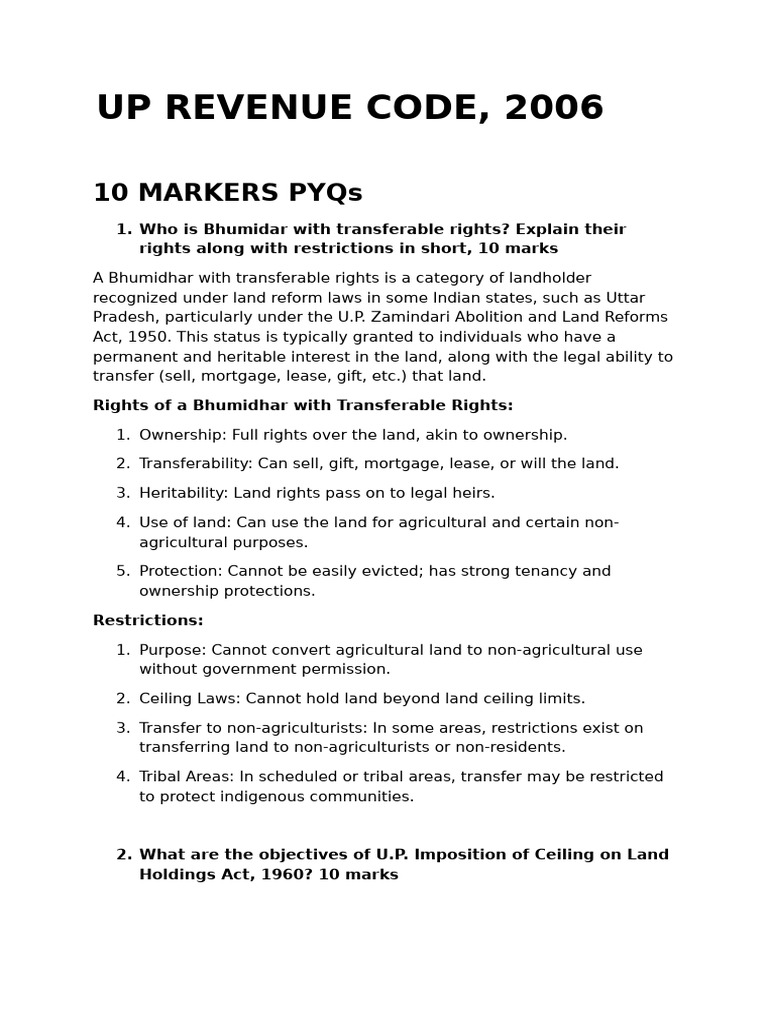 UTTAR PRADESH REVENUE CODE, 2006 With 2020 Amendment | PDF | Lease ...